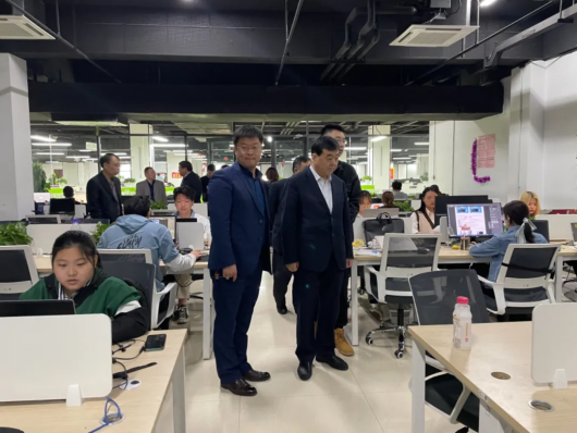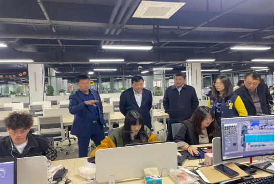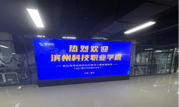 2021年4月25日中午11点到达位于潍坊新迈尔科技有限公司潍坊数字小镇交流学习。新迈尔科技有限公司潍坊数字小镇李睿、胡金行副总负责接待,并参观了新迈尔科技有限公司的实训教学办公区域。