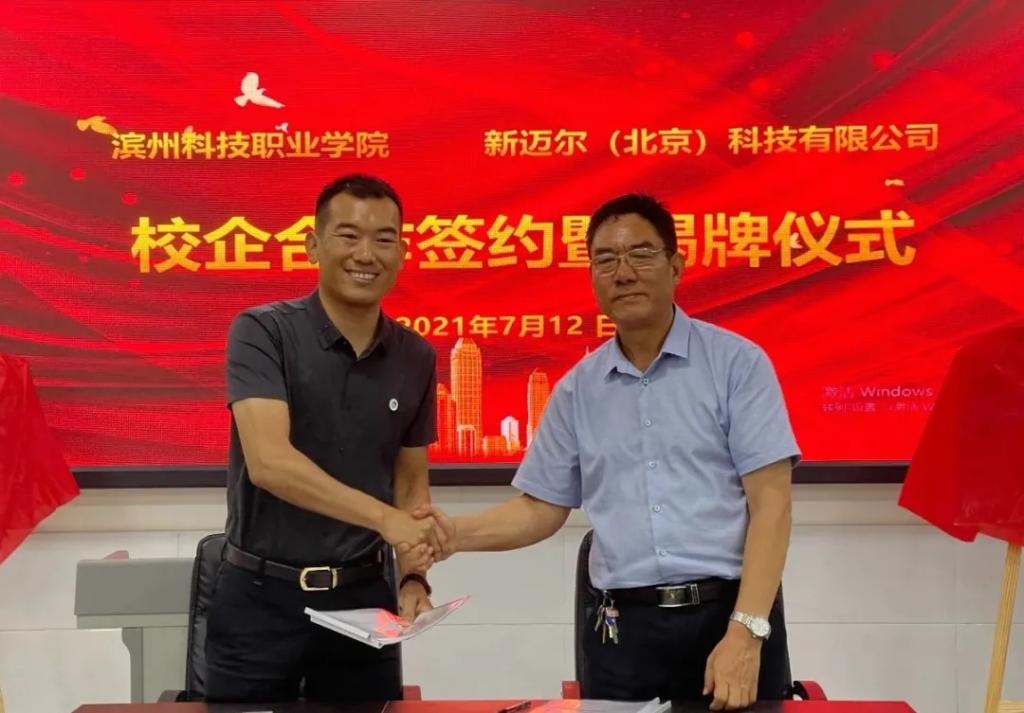 新迈尔(北京)科技有限公司副总裁刘洋表示,新迈尔(北京)科技有限公司是行业领先的产教融合型企业,国家级高新技术企业。在产业端,山东潍坊新迈尔数字小镇实现了校企融合、产教融合、产城融合。在教学端,搭建了“育人体系、技能体系和实训体系”,实行三段式“双元制”产教融合人才培养模式。希望借着国家产教融合大形式的东风,与滨科院风雨同行、同舟共济。