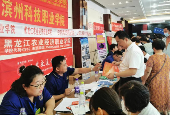 在莒南县招生咨询会现场,学院展位前,人头攒动、人山人海,场面火爆。刘曙明副院长代表学院对给予帮扶指导的潍坊职业学院招生工作人员以及我院辛勤工作在招生一线的工作人员表示慰问和感谢,希望老师们发扬学院优良作风,做好今年招生宣传和咨询工作,争取学院2021年招生工作的首战告捷。