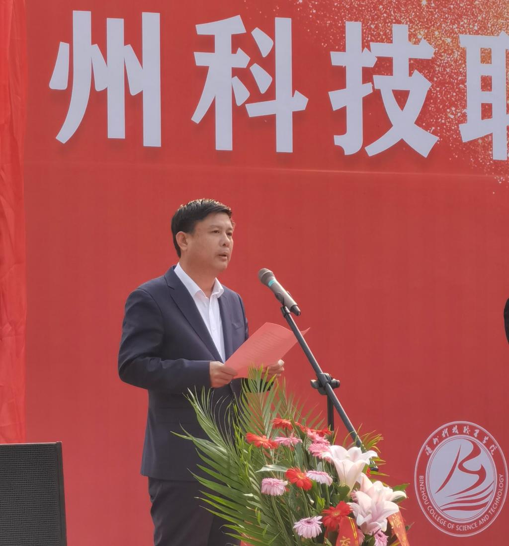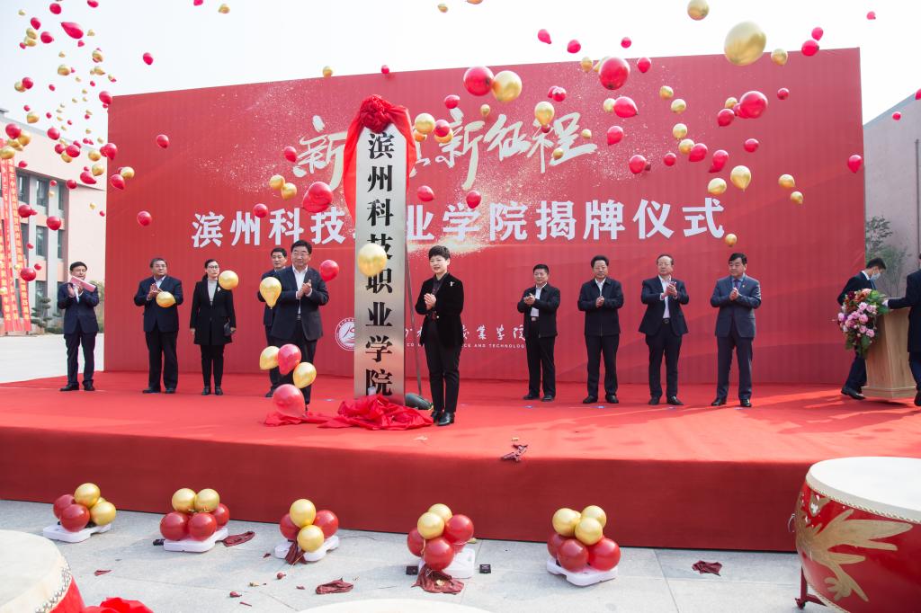 滨州市教育局、财政局、发改委、农业农村局、人社局等市级单位负责同志,滨城区教育和体育局负责同志,经济技术开发区教育局负责同志、高新区教育工作专班、惠民县教育和体育局代表,滨州市第一中学、潍坊职业学院、滨州职业学院、滨州市高级技工学校、鲁北技师学院等兄弟院校负责人及代表,经济技术开发区组织部、投资促进局、经济发展局、财政分局、政法信访办等负责同志亲临祝贺。学校党委书记刘相生、院长王家爱及全体领导班子成员、师生共计1800余人参加了揭牌仪式,共同见证了学校发展的这一历史时刻。