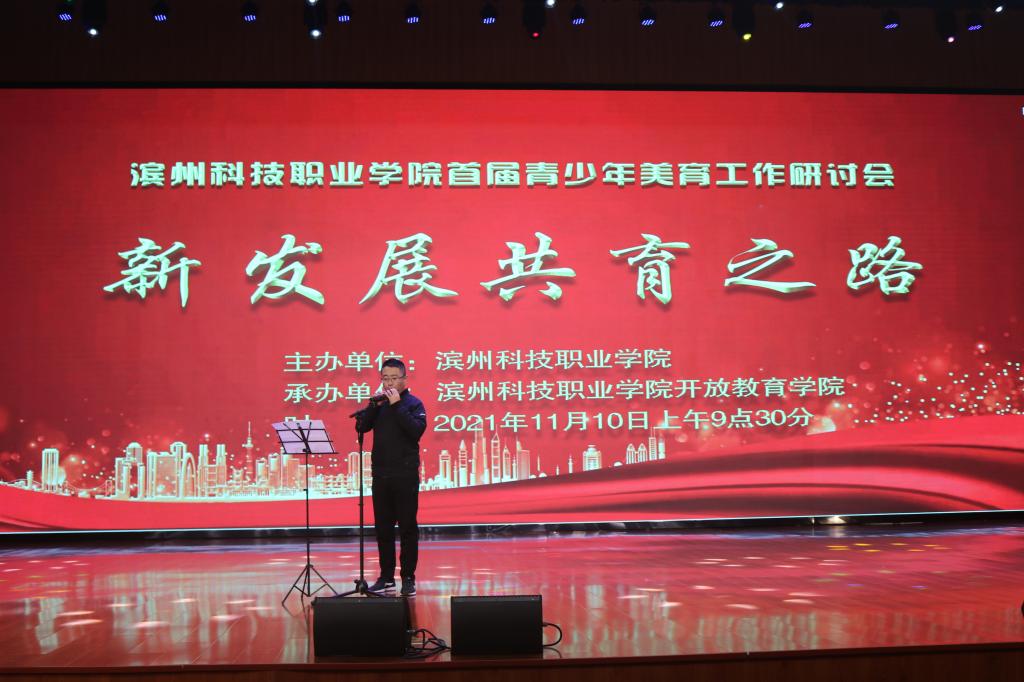 随后,滨州学院艺术学院李建军副院长致辞,他表示,美育成为一种行为健全的人格教育、全面发展的素质教育、心理健康的情感教育,美育的本质就是人性的教育。创新打造以更加开放、自由的学习方式构建切合学生需求的实施路径和内容,积极探索满足现代学生多元需求的教育理念和教学模式,破解学校美育工作现实困境,提升美育育人质量,真正落实学校“立德树人”的根本任务。