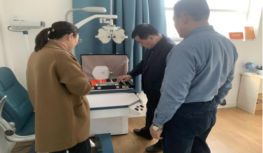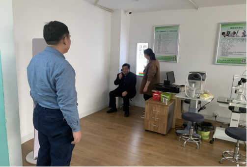 卢冬雪经理诚挚邀请刘相生书记进行视力检测。