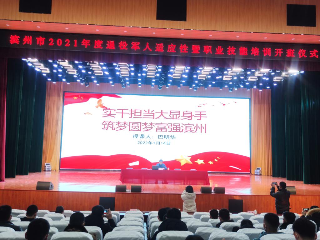 2022年1月14日上午9点,“滨州市退役军人欢迎仪式、适应性培训和职业技能培训开班仪式”分别在亚洲性夜色九九九久久久-国产婷婷综合在线视频中文-日本无码毛片一区二区手机看-精品无码久久久久-国产人妻精品一区二区三区不卡三圣源广场和音乐厅举行。滨州市退役军人事务局党组书记、局长巴明华,党组成员、副局长韦安祥,就业创业科长高波,以及滨州渤海教育集团创始人、学院党委书记刘相生,学院副院长吴云成,开放教育学院院长王军出席仪式。还有退役士兵、学院教师、国防班学生等160余人参会。欢迎仪式由高波科长主持,适应性培训和职业技能培训开班仪式由王军院长主持。