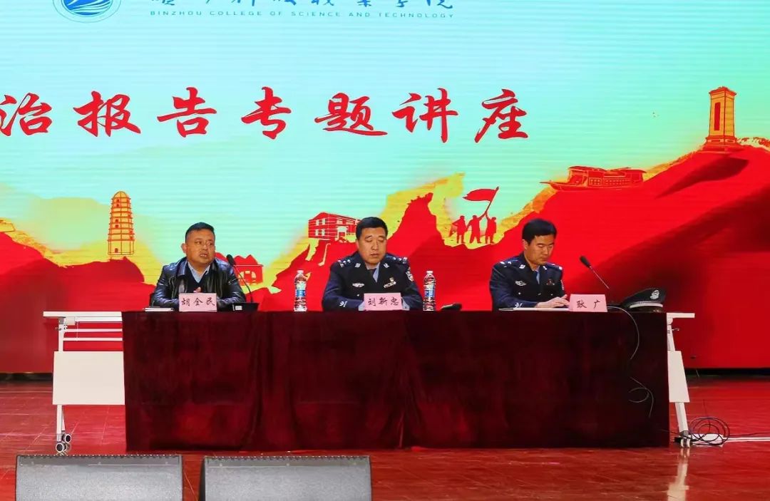 为增强学生法律意识,提高自我保护能力,营造校园法治环境。2022年11月22日,我校邀请滨州市公安局经济技术开发区分局耿广警官与工业园区派出所刘新忠所长进校园开展“法治与青春同行”专题讲座。