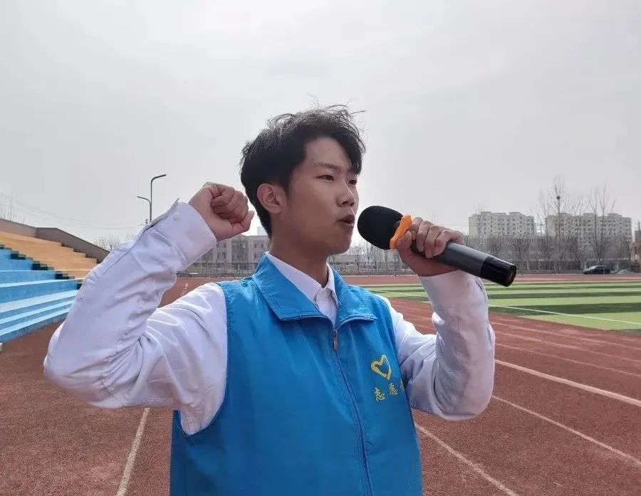 青年志愿者代表赵兴龙带领全体师生进行宣誓。