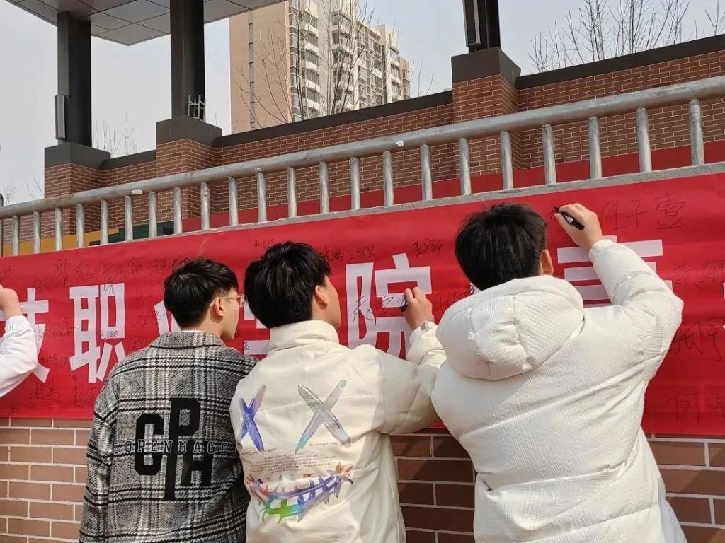 同学们通过在主题横幅上签名,表达积极响应志愿服务号召,践行新时代雷锋精神的决心与信心。