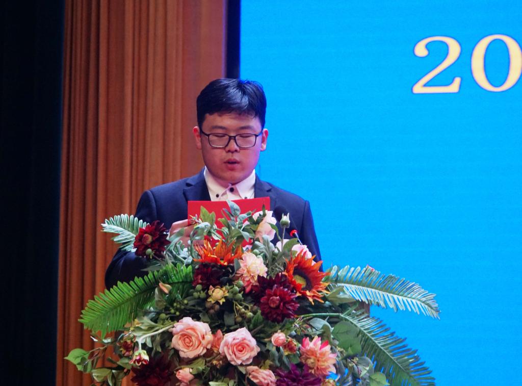 获奖学生代表杨雨豪发表感言,他讲述了自己参与技能比赛的经历,作为一名高职学生应该具备吃苦耐劳、踏实勤干的精神,同时不忘学校领导的殷切关怀和老师们的悉心呵护,希望以后将不断迎接新挑战,取得新成果,以此回报培育自己的老师和学校。