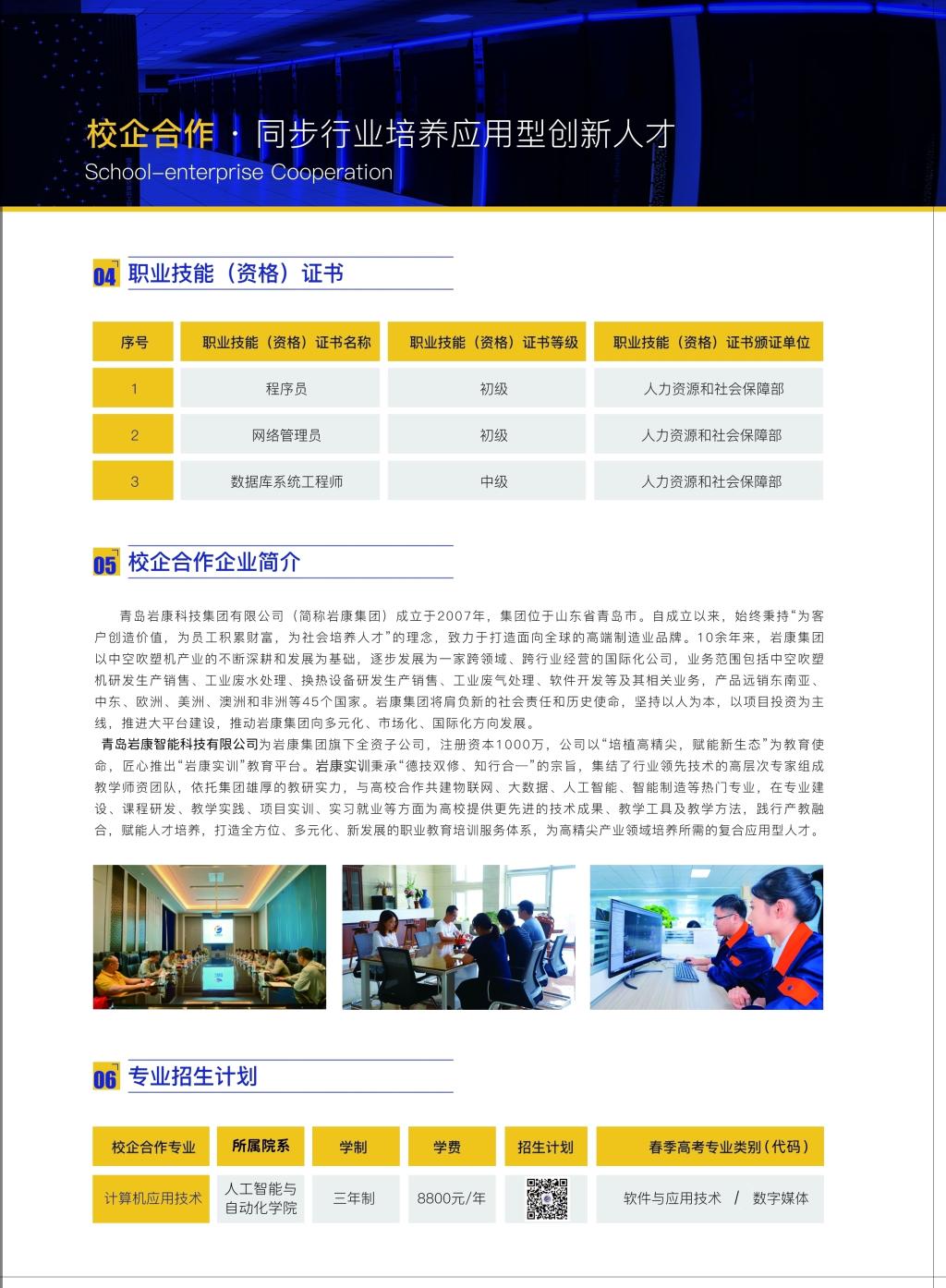 2023年青岛岩康计算机应用技术专业招生简章