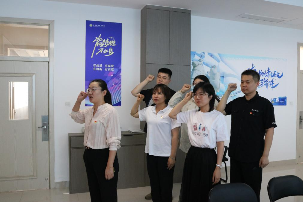 在党旗下,全体党员重温入党誓词。入党誓词的十二句话,句句千钧,概括了党对党员的基本要求,也概括了党员对党组织和党的事业所应承担的政治责任。党员们纷纷表示,要时刻牢记自己在入党举起右手面对党旗进行宣誓的时候,在今后的漫长的工作当中,毫不衰减地把它坚持下去,通过自己不懈的努力为党的旗帜增添光彩。