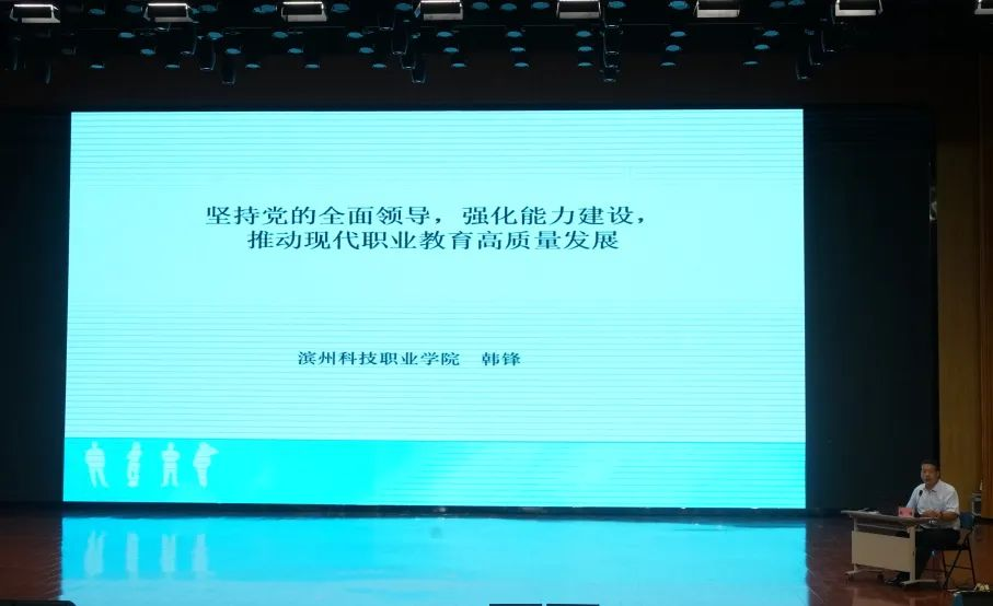 党委书记韩锋以《坚持党的全面领导,强化能力建设,推动现代职业教育高质量发展》为题,围绕党的十八大以来关于办好人民满意教育的相关表述、“关于加强民办学校党的建设工作的意见”主要精神、中共中央推动现代职业教育高质量发展的重要举措、职业院校师资队伍建设的基本要求等方面作了专题解读。