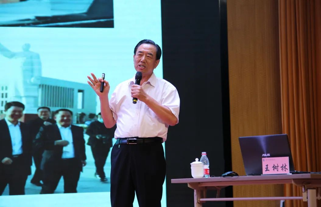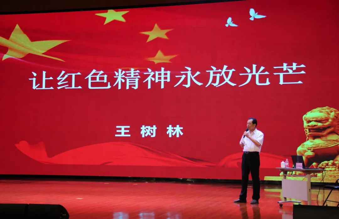 副院长王树林以习近平总书记的红色情节、习近平总书记的“百年党史观”、习近平新时代中国特色社会主义思想与毛泽东思想一脉相承、沿着习近平新时代中国特色社会主义胜利前进为主要内容,作了《学习习近平新时代中国特色社会主义思想——让红色精神永放光芒》专题报告。