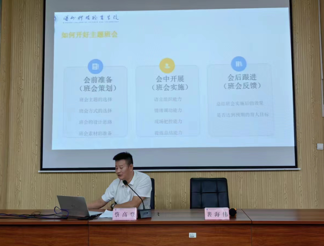 学生工作处副处长裴海伟就如何开好主题班会作专题培训,他强调,开好主题班会是实现学生价值塑造、知识传授和能力培养目标的重要途径,是辅导员的一项重要基本技能,要以辅导员为主导、以学生为主体。各位辅导员老师要通过开好主题班会,加强思想引领、促进感情交流、提升育人实效。