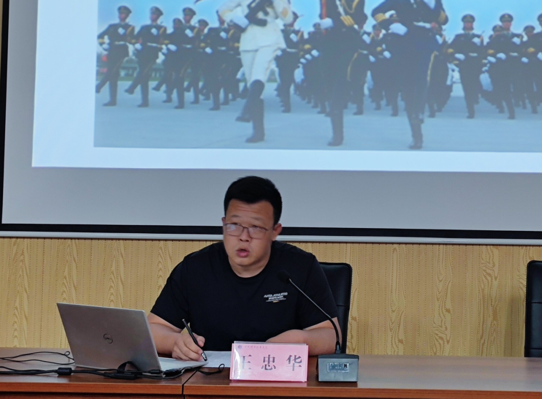 王忠华老师从大学生入伍征集条件标准、征集流程、优待政策对大学生入伍政策进行了解读,他强调要加强学生入伍的思想政治教育和各项政策宣传,主导组建应征入伍积极分子交流群,探索出一条扎实有效的征兵宣传之路,力争为新时代国防建设作出更多贡献。