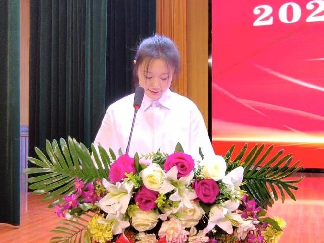 2023级青云班新生代表、医养健康学院康复治疗技术专业学生于欣雨进行发言,表示要明确学习目标、勤于学习善思;要尊敬师长、团结同学、在学习中进步;要坚定信念、坚持努力、创造美好明天。