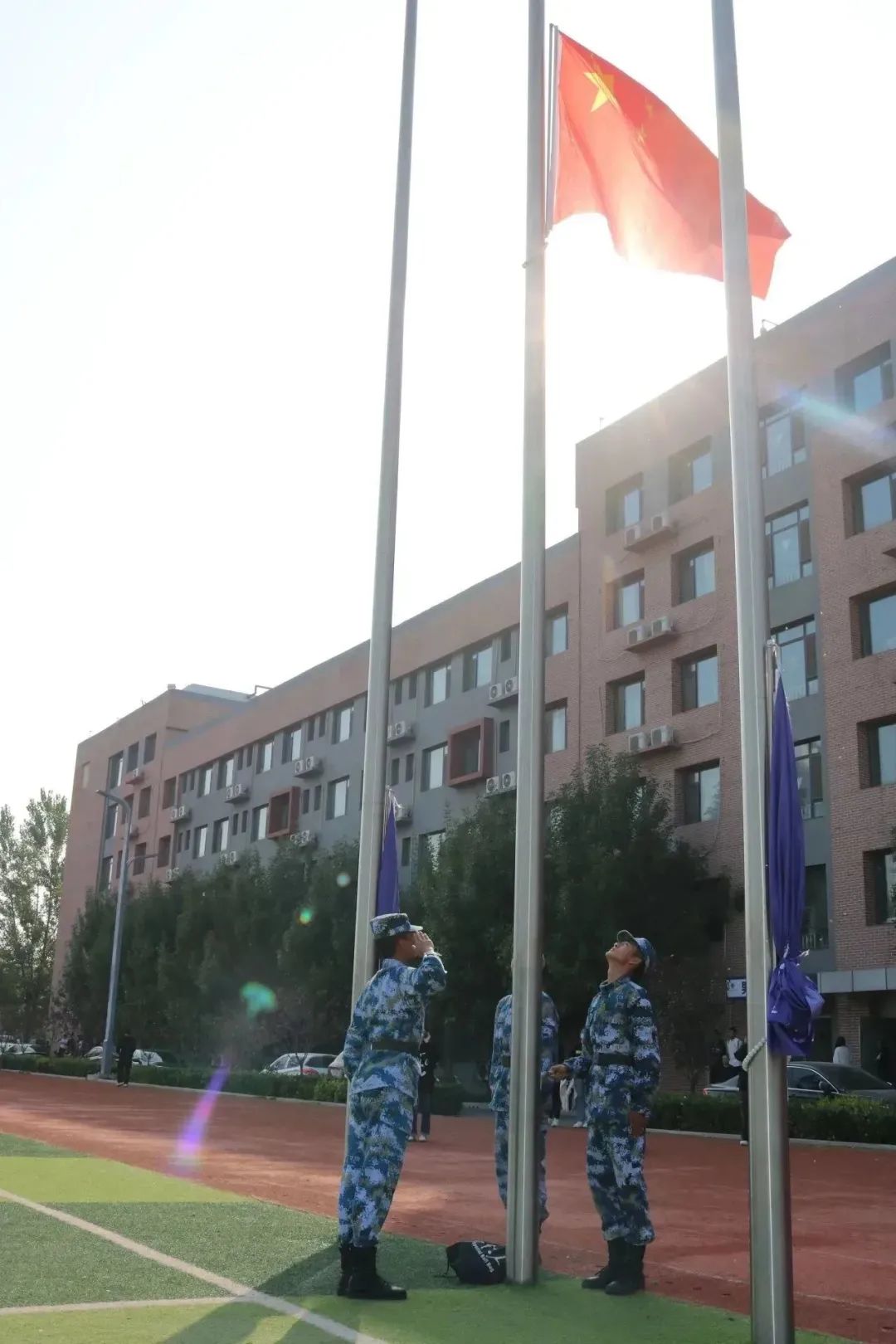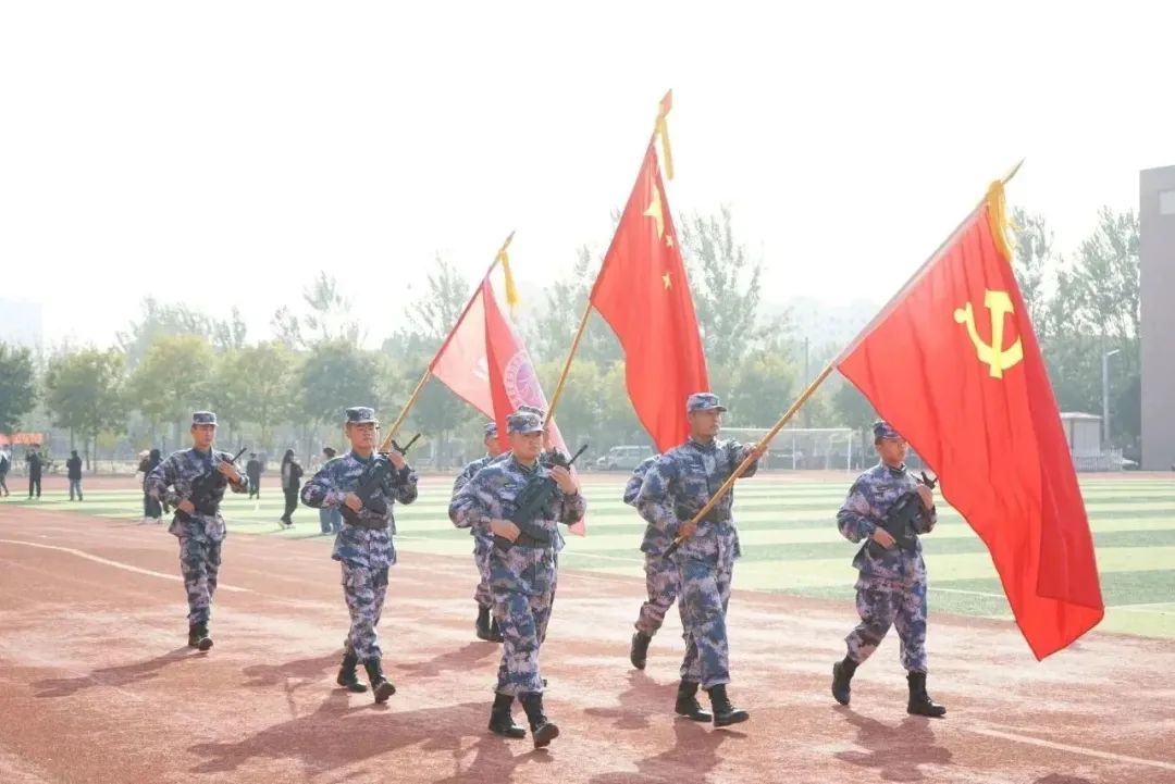 国旗护卫队以饱满的精神状态,身着统一制服,踏着庄严军姿,手挚党旗和五星红旗,成为田径场上最吸引人的风景,激发了全校师生的爱国热情。