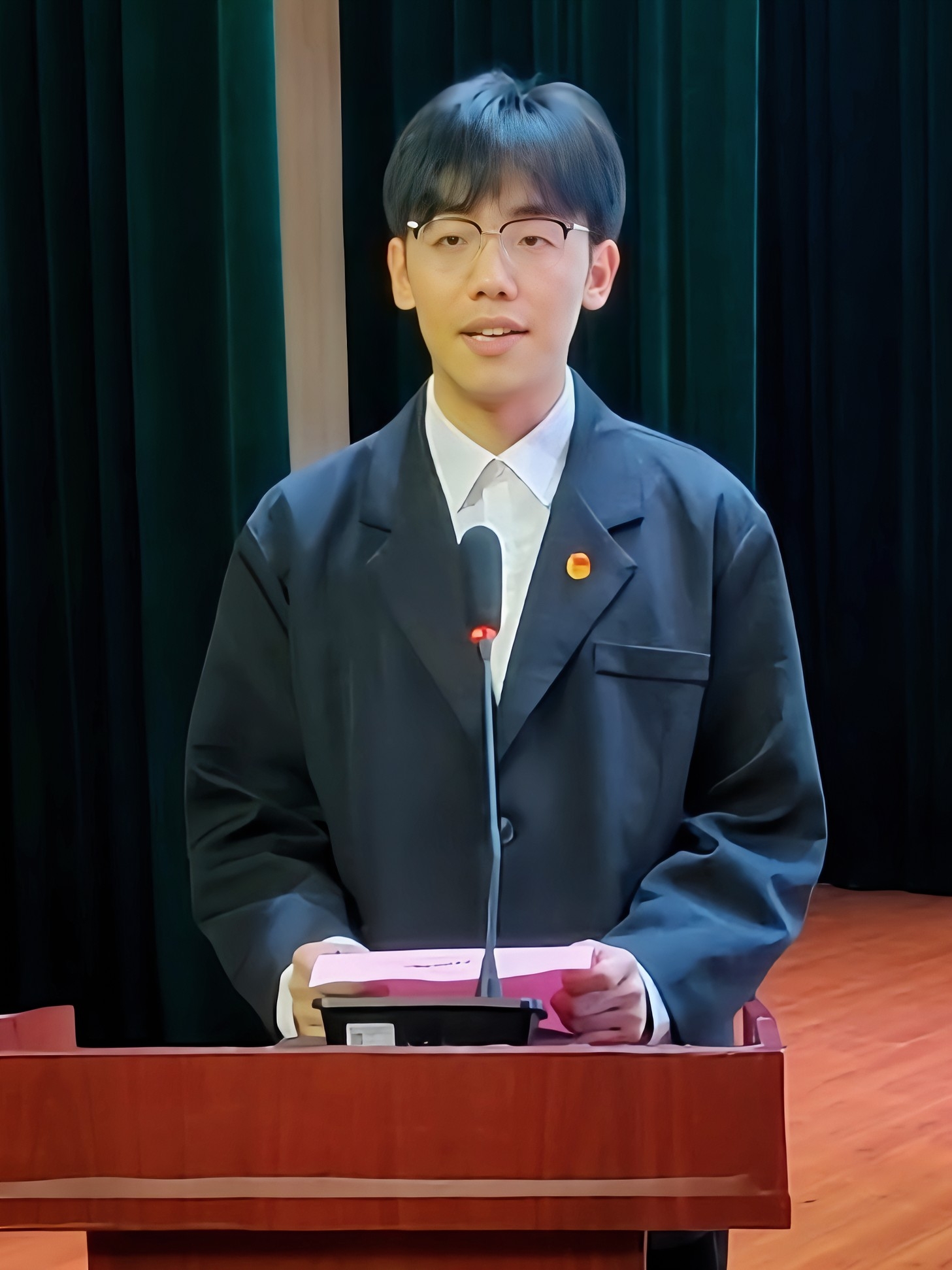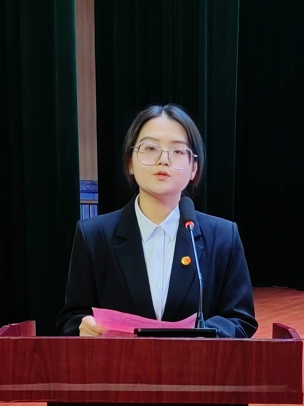2023级新生团支部书记代表、医养健康学院孙喆昕同学在发言中表示,要团结带领同学们提升自己,把学习的内容和所获得收获化为自己的实际行动,应用在实际生活中,在同学们中起到模范作用、榜样作用。