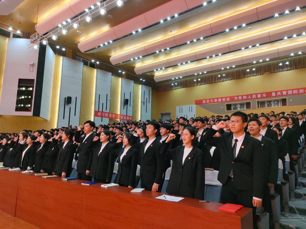 各二级学院团总支书记带领全体青马班成员面向团旗,右手握拳,重温入团誓词、践行青春誓言。一句句慷慨激昂的铮铮誓言,震撼激励着现场的每一位学员,学员们在团旗下坚定而充满力量地宣誓,重拾着入团时的那份青春记忆与感动。