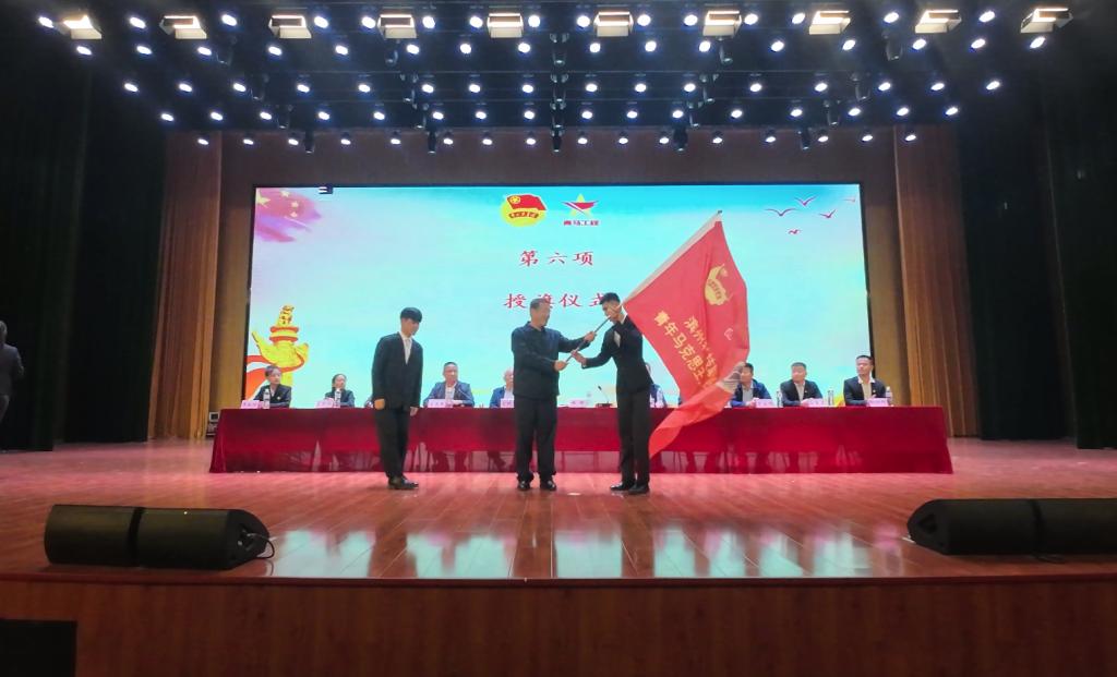韩锋为“青马工程”大学生骨干培训班授旗。