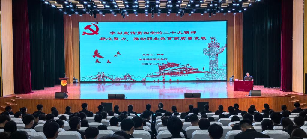 韩锋作“学习宣传贯彻党的二十大精神,凝心聚力,推动职业教育高质量发展”专题报告。他在报告中围绕党的十八大以来关于办好人民满意教育的相关表述,强调要深入学习贯彻习近平新时代中国特色社会主义思想主题教育,坚持不懈用习近平新时代中国特色社会主义思想凝心铸魂,切实加强党的思想建设,推动全党深刻领悟“两个确立”的决定性意义,增强“四个意识”、坚定“四个自信”、做到“两个维护”,始终在思想上政治上行动上同以习近平同志为核心的党中央保持高度一致。