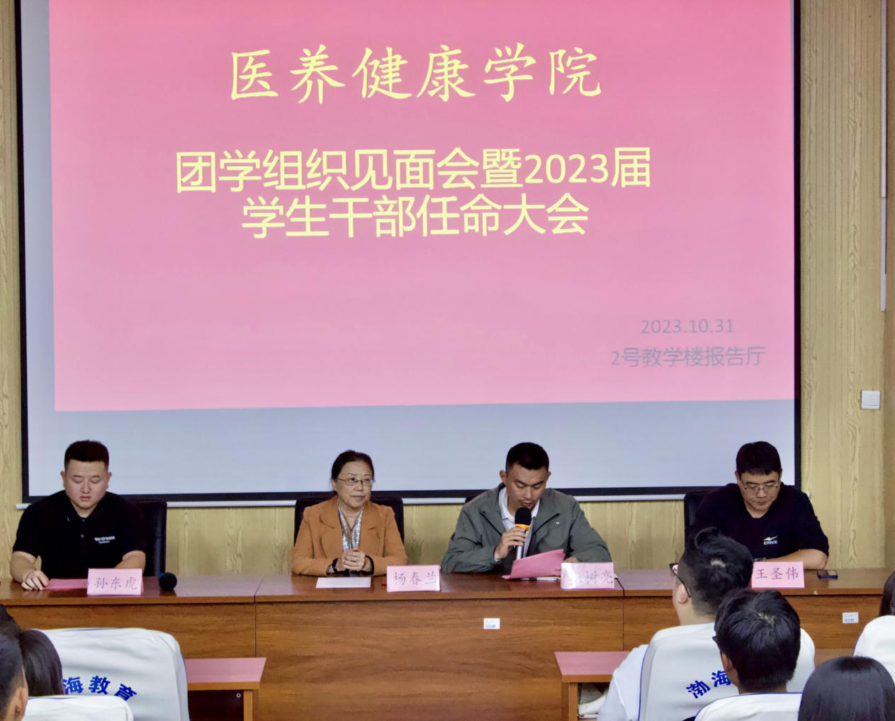 医养健康学院举办团学组织见面会暨学生干部任命大会,医养健康学院院长杨春兰出席本次活动,对新一届学生干部给予了充分的肯定,并作出指示要加强学生干部作风建设,深化学生干部健康成长教育,围绕思想作风、学习作风、工作作风等方面开展专题培训,着力打造信念坚定、品学兼优、朝气蓬勃、心系同学的学生干部队伍。