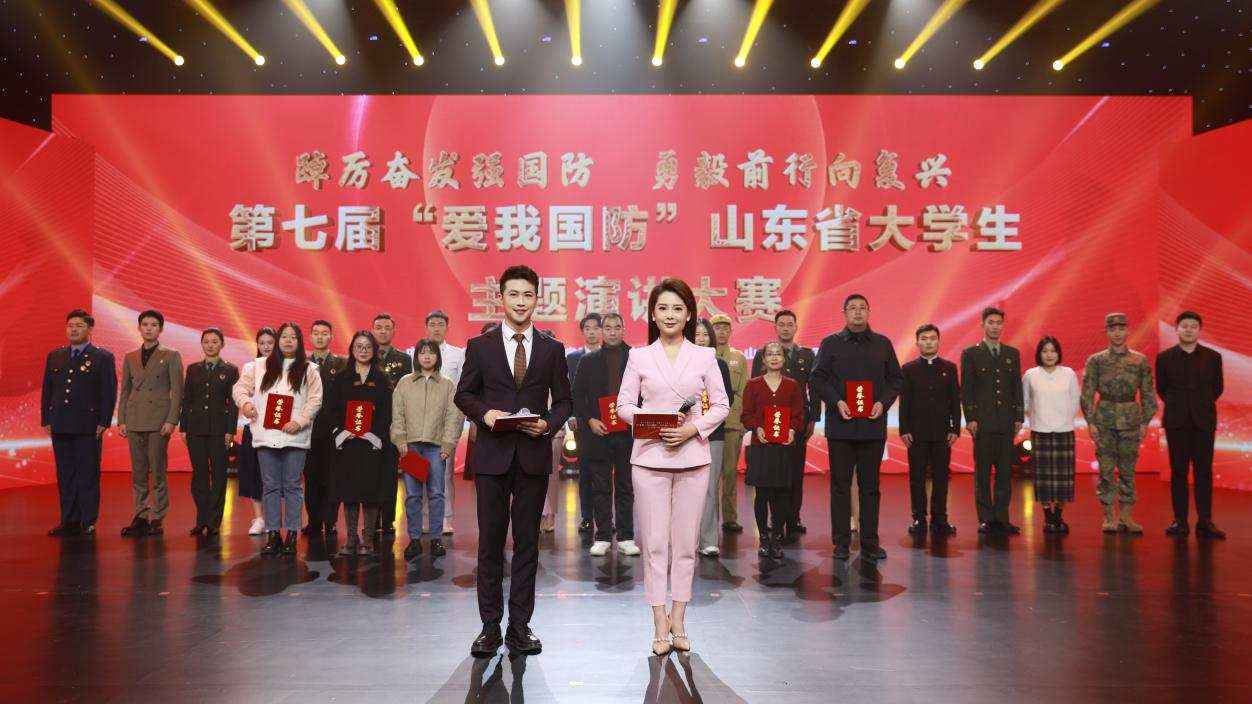 在省级复赛中,67组选手齐聚山东教育电视台演播大厅,他们在舞台之上用自己的声音,表达对“爱我国防”的理解,抒发对新时代实现中国梦强军梦的感悟,我校学生温如新披荆斩棘,进入前15名,挺进总决赛。最终在决赛中获得省级三等奖。