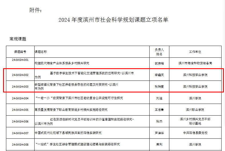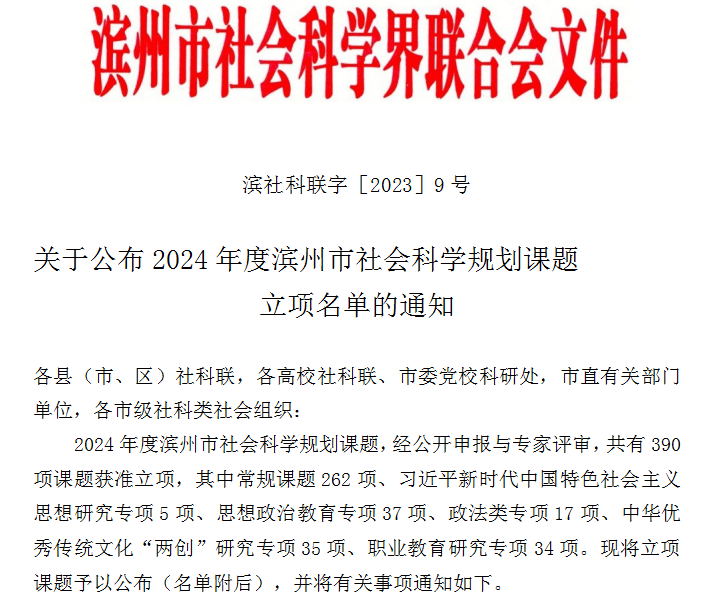 近日,滨州市社科联印发了《关于公布2024年度滨州市社会科学规划课题立项名单的通知》,亚洲性夜色九九九久久久-国产婷婷综合在线视频中文-日本无码毛片一区二区手机看-精品无码久久久久-国产人妻精品一区二区三区不卡9项课题获得立项,取得开门红。