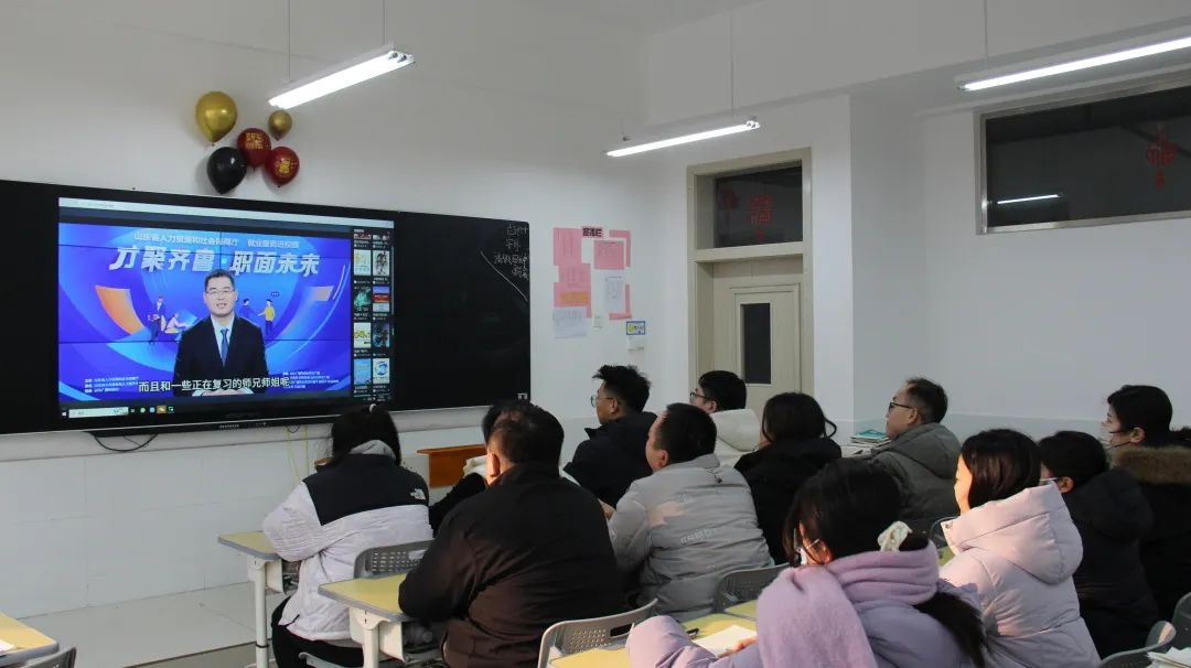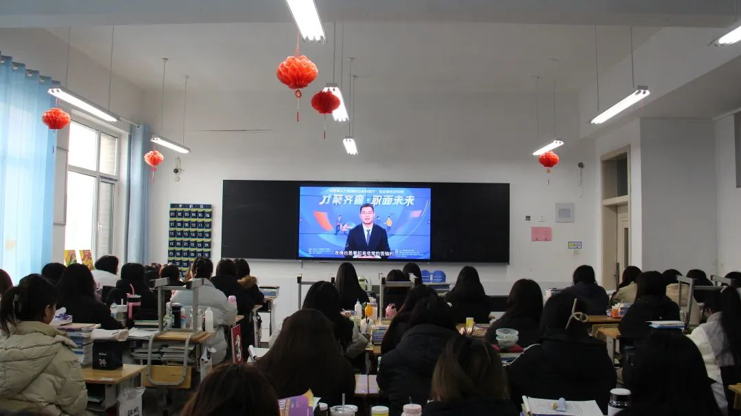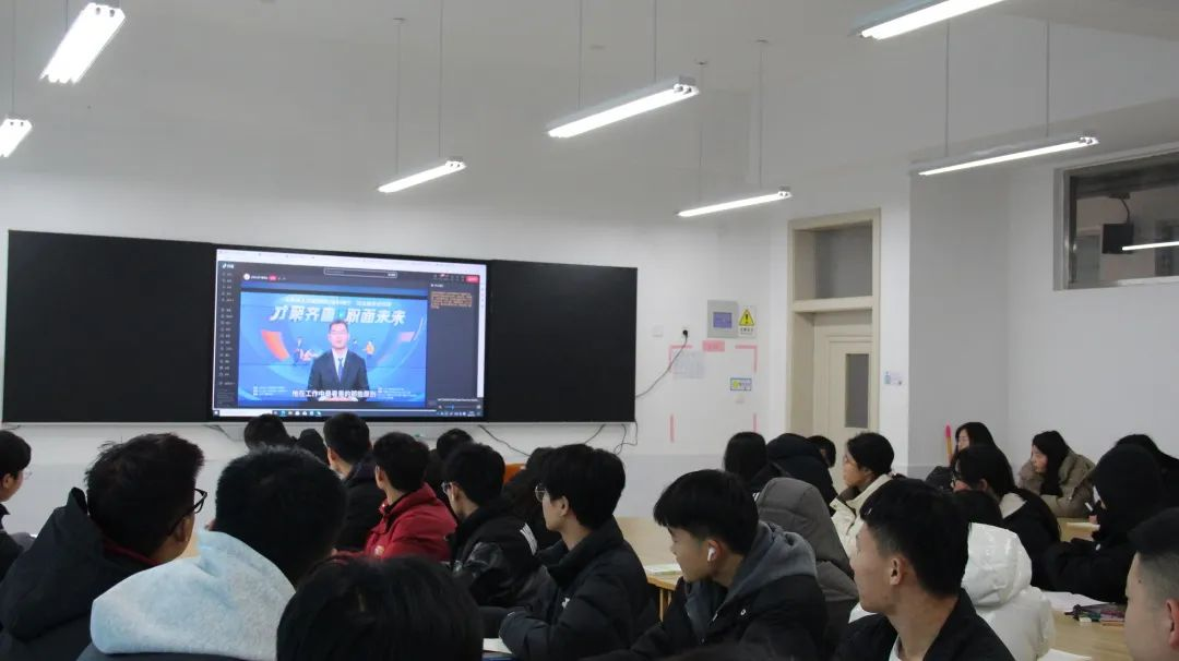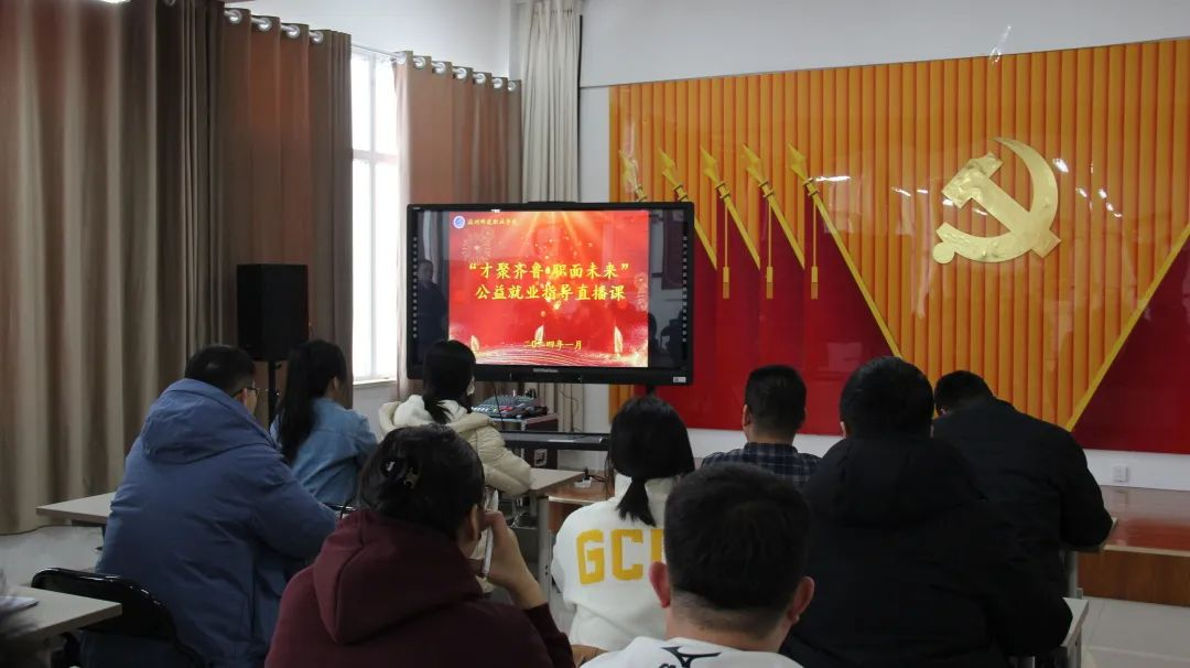 为深入学习贯彻党的二十大精神,落实党中央、国务院关于做好高校毕业生就业工作决策部署,推动我省高校毕业生就业指导服务提质升级,省人力资源社会保障厅联合山东广播电视台共同拍摄制作了“才聚齐鲁•职面未来”公益就业指导直播课活动,学校高度重视毕业生学生就业问题,1月2日,我校精心组织动员2024届全体毕业生、辅导员和招生就业处全体人员观看“才聚齐鲁·职面未来”公益就业指导直播课。