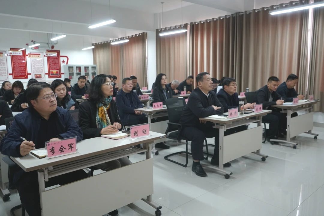 学校党委、行政班子、党建指导员及全体中层干部参加会议。