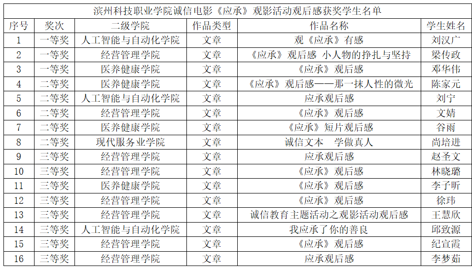 “人而无信,不知其可也”。诚信是中华民族的传统美德,是社会主义核心价值观的重要内容。为进一步巩固和深化诚信教育成果,引导青年学生讲诚信、树诚信、践诚信,培养新时代大学生诚信品质,5月17日-5月22日各二级学院利用晚自习期间有序组织开展诚信观影活动,随后进行观后感评比。此活动各二级学院评比后推选观后感42篇,随后进行校级评比。