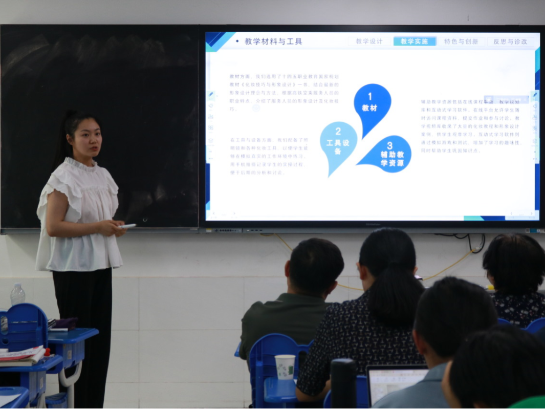 比赛过程中,参赛教师们准备充分,分工明确,围绕各自专业领域,结合专业特点和学科核心素养,通过精炼的语言、新颖的设计,将“工匠精神”和“思政元素”融入其中作了课程实施报告,在授课展示环节各位教师发挥独特优势,科学设计教学内容,运用创新的教学模式,以良好的授课风貌及生动的现场演示,为观众们呈现一场场精彩的教育盛宴,展现出我校教师扎实的教学技能、进取的精神风貌和求实求新的教学态度。