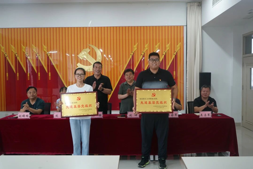 王孟凡、王莎莎、孙东虎、杨新新、高丹丹5名同志获得“优秀共产党员”称号,王忠凯、任美玲、孙琦瑕、赵维文4名同志获得“优秀党务工作者”称号,机关第三党支部、马克思主义学院党支部获得“先进基层党组织”称号,与会学校党委领导班子成员、党建指导员为受表彰的党员、党组织颁发证书和奖牌。