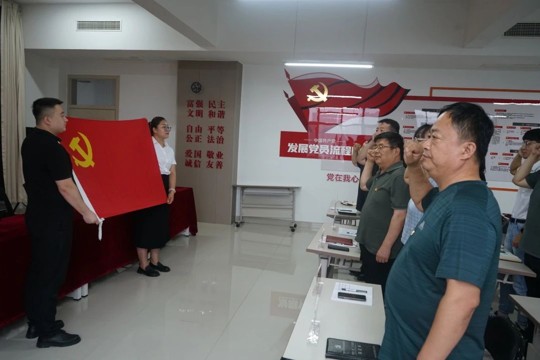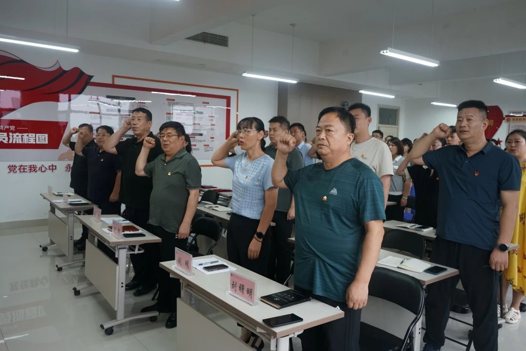 全体党员在李会军的带领下,共同重温入党誓词。这一神圣时刻,让每一位党员的心灵再次受到震撼与洗礼,誓词中的每一个字都掷地有声,回响在每一位党员的心间,提醒他们不忘初心、牢记使命,将个人的理想追求融入到党和人民的事业之中,为实现中华民族伟大复兴的中国梦不懈奋斗。