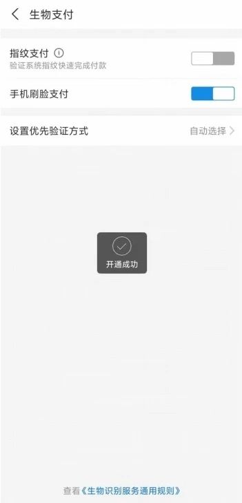 10、人脸验证成功后开通手机刷脸支付