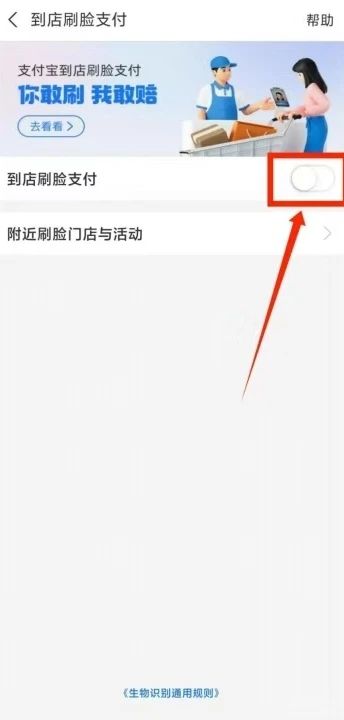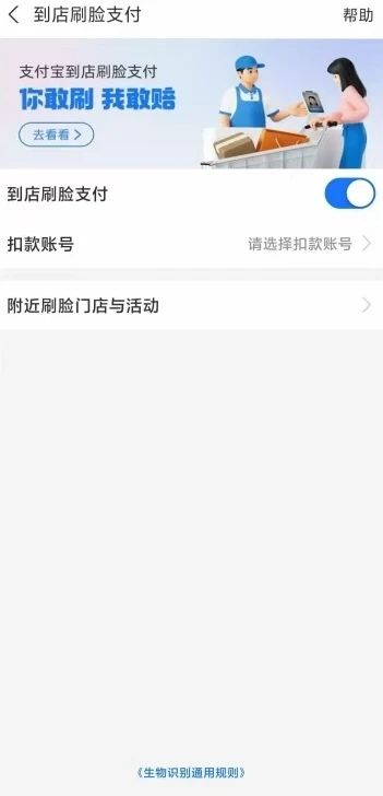 5、如本人支付宝未开通到店刷脸支付,则无法进行刷脸付款。