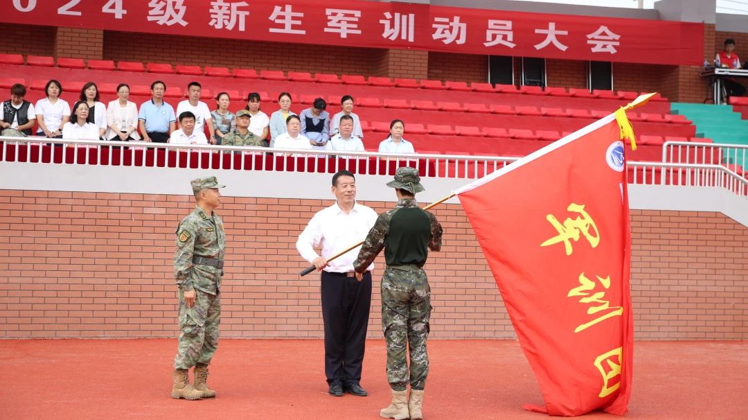 韩锋为军训团授旗。