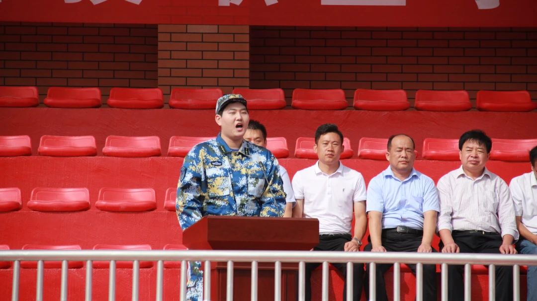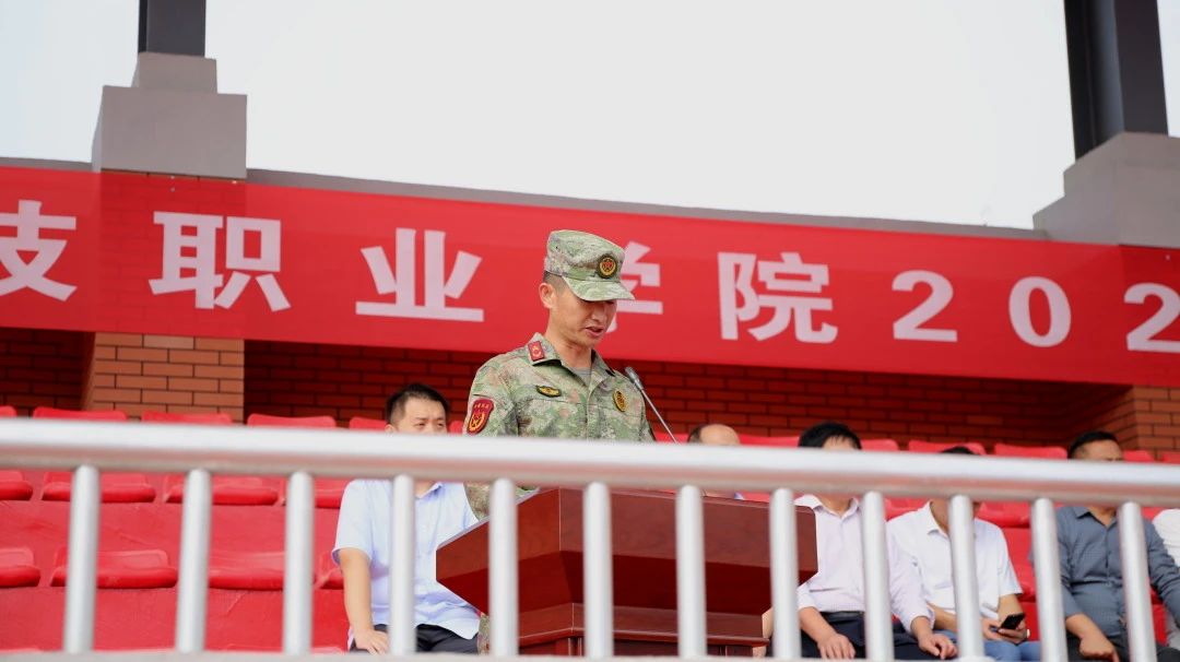 军训总教官孟刚在讲话中要求,各位教官要文明施训、科学施训、安全施训、快乐施训,以身作则确保顺利完成军训任务。