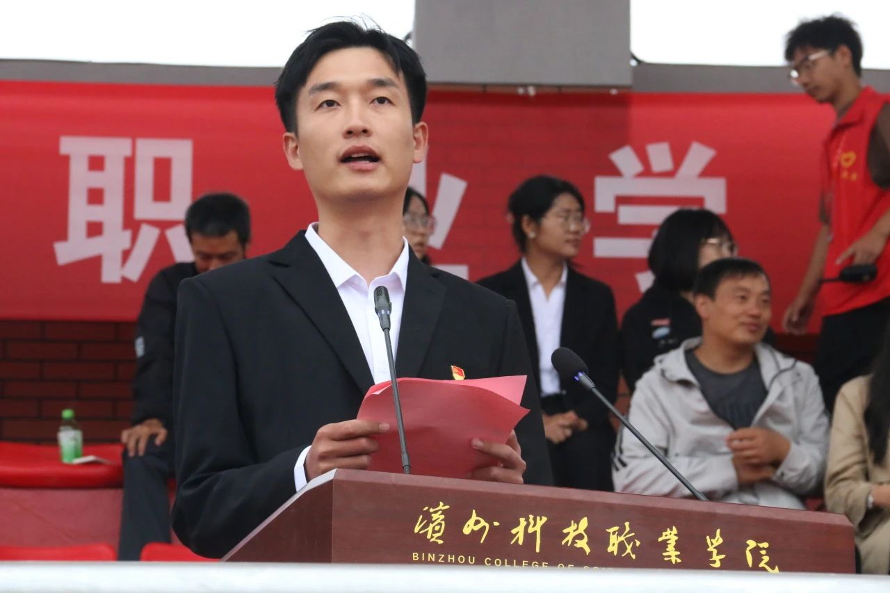 大二学生代表、经营管理学院网络营销与直播电商专业吕炳辉在发言中表示,作为学长鼓励大家积极参加各类专业比赛,踊跃参与各类社团活动,社会实践活动,不断地丰富自我,尽情追逐自己的梦想。