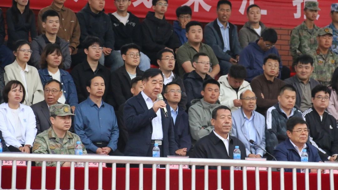 党委委员、常务副校长刘祥在讲话中指出,军训期间全体参训同学自觉刻苦训练、服从指挥,出色地完成了各项训练任务,充分展现出昂扬拼搏的精神风貌,通过军训,同学们强健了体魄,磨炼了意志,塑造了优良作风,这些成果都将作为一笔宝贵的精神财富,为同学们今后的大学生活和人生路途提供源源不断的动力。希望同学们立鸿鹄之志,保持上进心,做有志气的追梦人,甘下苦功夫,在日积跬步中夯实知识根基,提升综合素养,争做德智体美劳全面发展的时代新人,为成长为时代新人把稳舵,做到顺境中永不止步,逆境中永不沉沦。