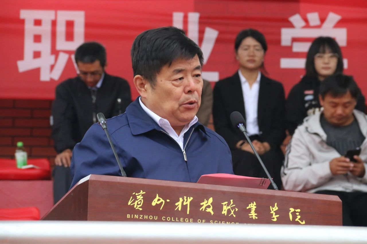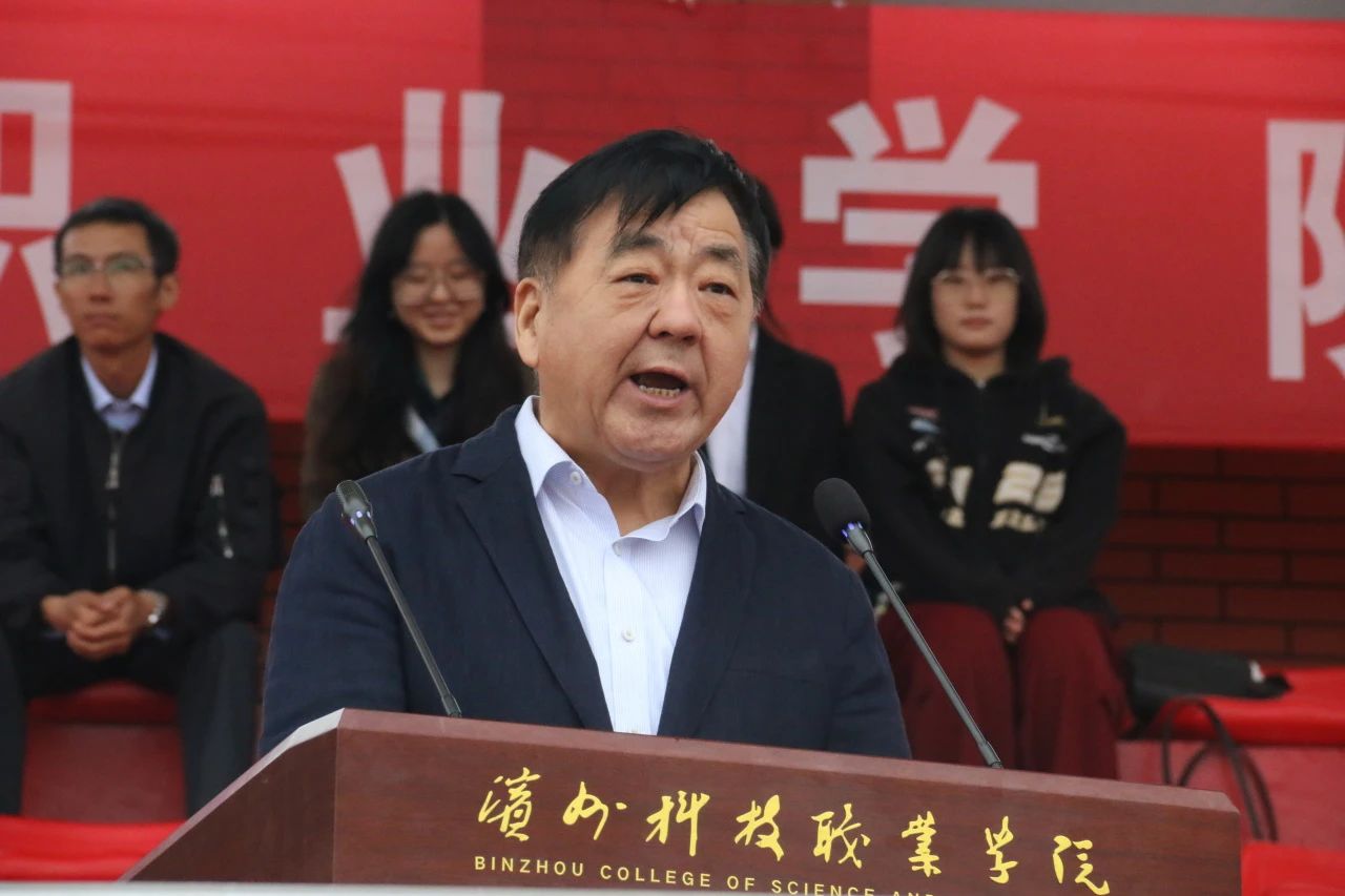 滨州渤海教育集团董事长刘相生宣布军训成果汇报正式开始。