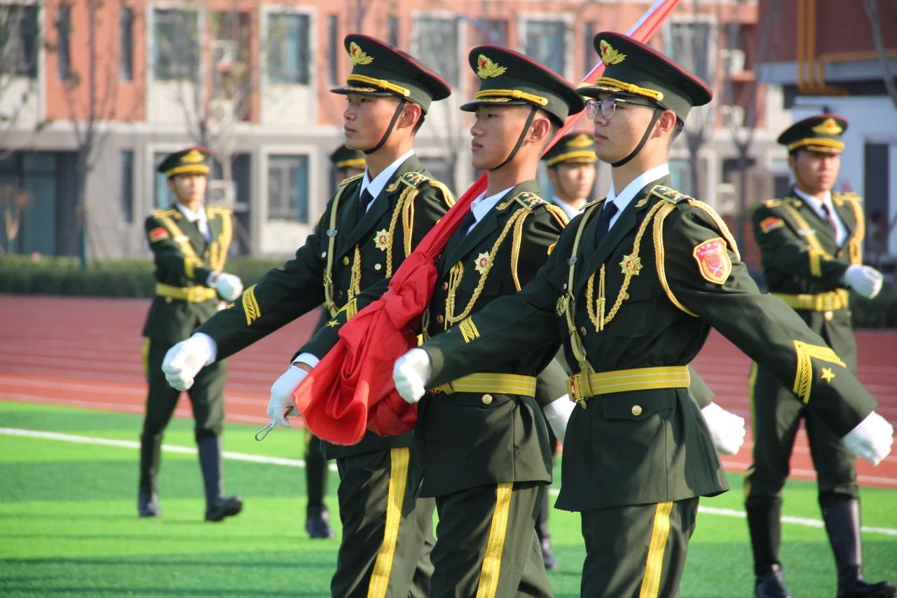 为保证升旗任务的高质量举行以及各种出旗任务和校外各类活动顺利开展,国旗护卫队定时定期进行队列训练、国旗知识讲座、升旗手情感教育以及仪态形体方面培训。