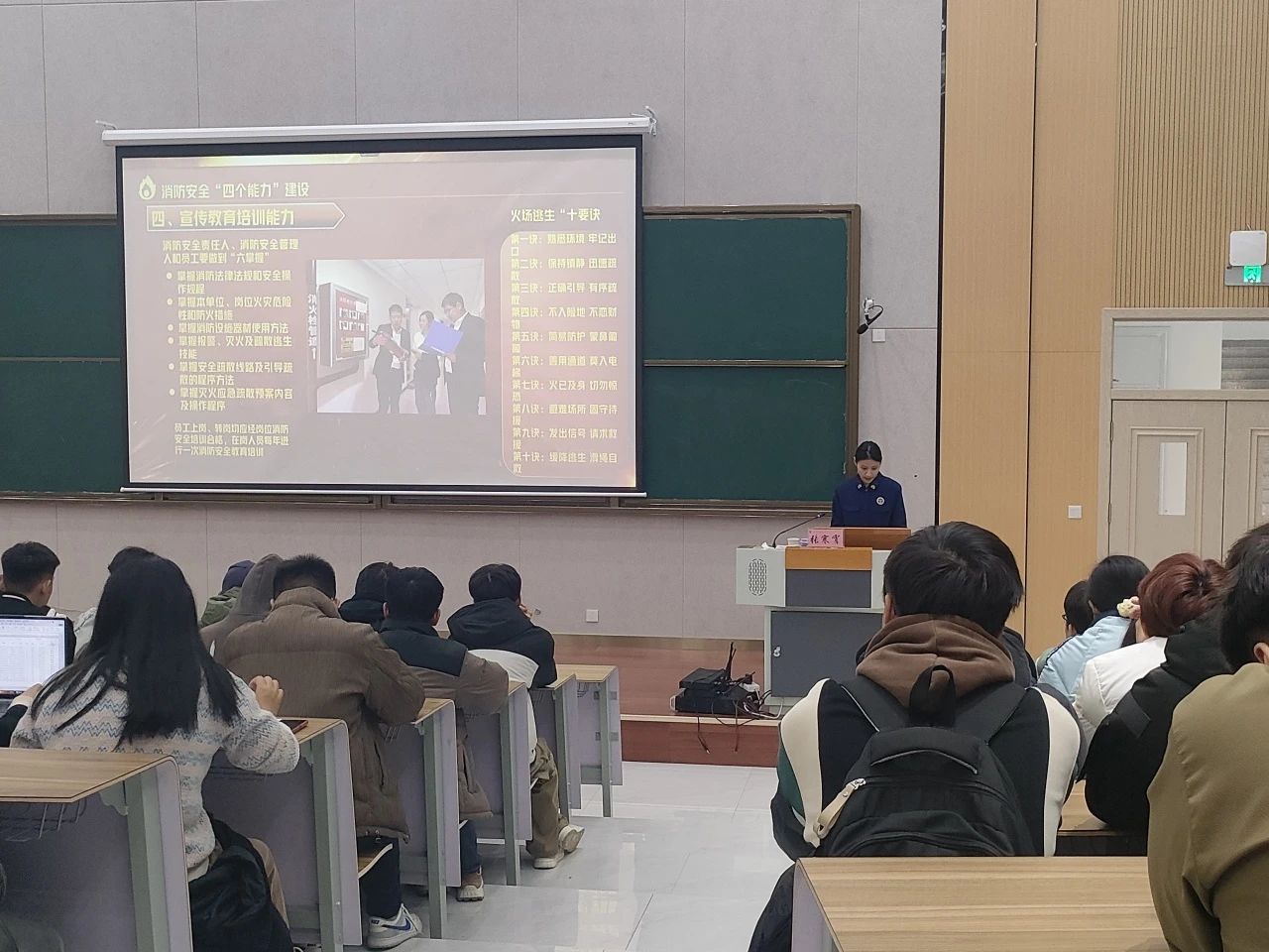 为进一步增强教职工的消防安全意识,提高火灾应急处置能力,结合我省第14个法定消防安全宣传月,我校于11月12日上午邀请滨州市经济开发区消防大队宣传科的张寒宵警官来到我校,给我们带来一场别开生面的消防安全培训。会议由安全与后勤处副处长王涛主持。