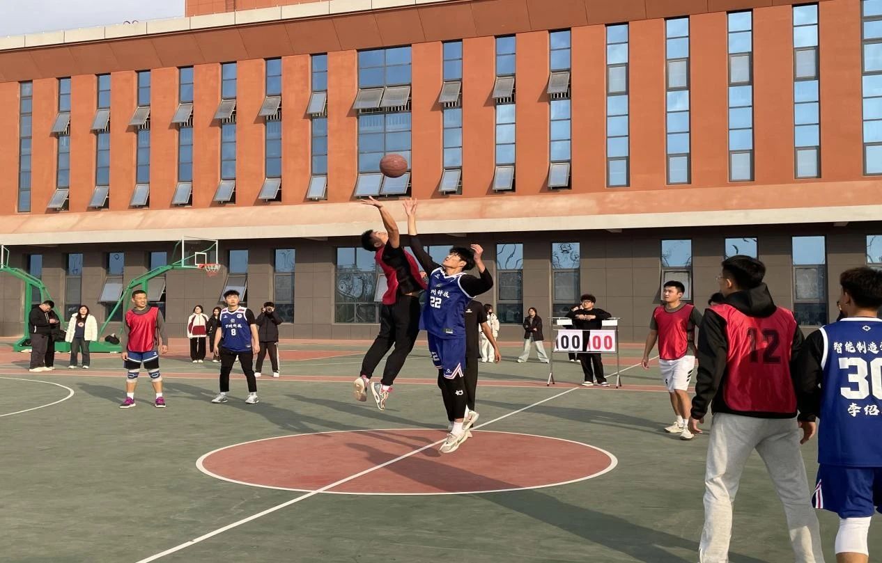 篮球比赛现场激情活力,朝气蓬勃。在师生篮球对抗赛环节,由张鹏队长带队、李泽豪、任文超、徐明谦、李浩、李成祥、张祥瑞、张陈杰、王富亮、朱江涛十位老师组成教师战队迎战智能制造学院、医养健康学院组成的学生战队。