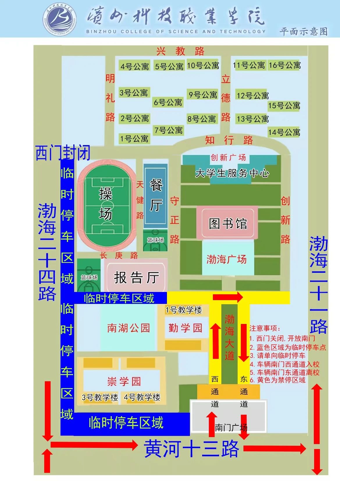 1.如因校内停车区域停满,请提前做好下车准备,不允许长时间停放、严禁在出口处停放,影响通行。