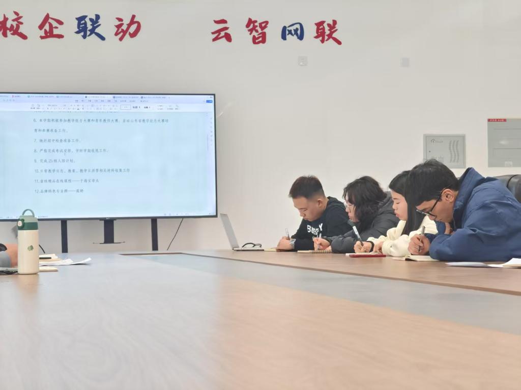 紧接着的教研活动,老师们共同研讨了本学期的教研活动计划,研讨检查了教学日历,然后教师们分组开展深度研讨。从教学理念到教学方法,从信息技术融合到学生能力培养,教师们各抒己见,智慧碰撞不断。谭院长针对于教育前沿动态,为教师提供了专业的指导与建议,鼓励大家在“五金”建设和教学实践中勇于尝试,敢于创新。