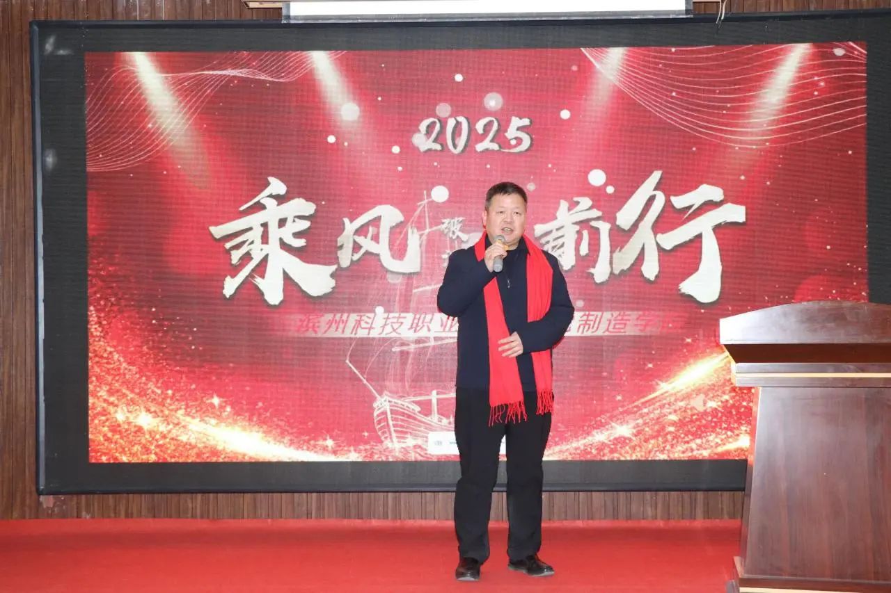为展现学院丰硕成果,丰富职工生活,加强团队建设,以更好的精神风貌迎接2025年,智能制造学院举办“乘风破浪 砥砺前行”元旦晚会。党委委员、副校长吴启军,智能制造学院院长李秀龙,学生工作处处长胡全民,招生就业处处长钟召平,校团委书记王忠凯及全体教职工参加此次元旦晚会。晚会由学院副院长白永锋主持。