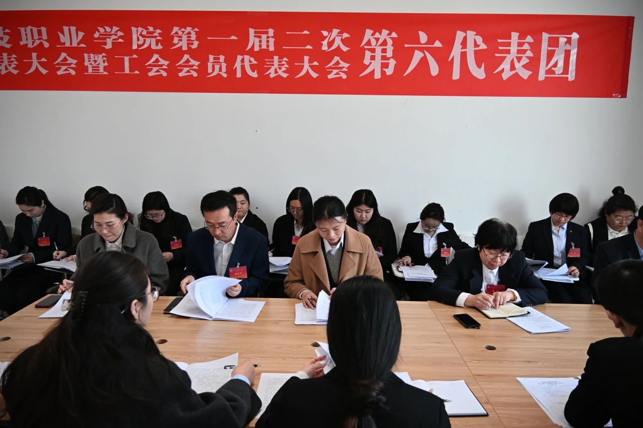 随后,6个代表团前往会议室分别讨论审议《学校工作报告》和《工会工作报告》。并结合工作实际,为学校高质量发展建言献策。