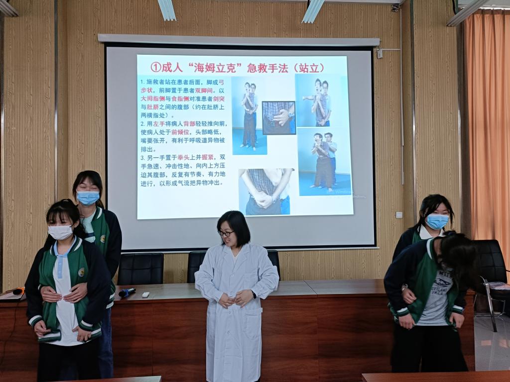 专题讲座共分为三个部分,分别请刘沙沙、牛伟华、张婷婷三位敏思笃行的专业教师为学生们进行生动地讲授,包括心肺复苏——心脏按压、海姆立克急救法、急救包扎技术等内容。本次讲座知识容量大,实际用途广,力求让学生“品尝”到一场“涤荡心魂的饕餮盛宴”。