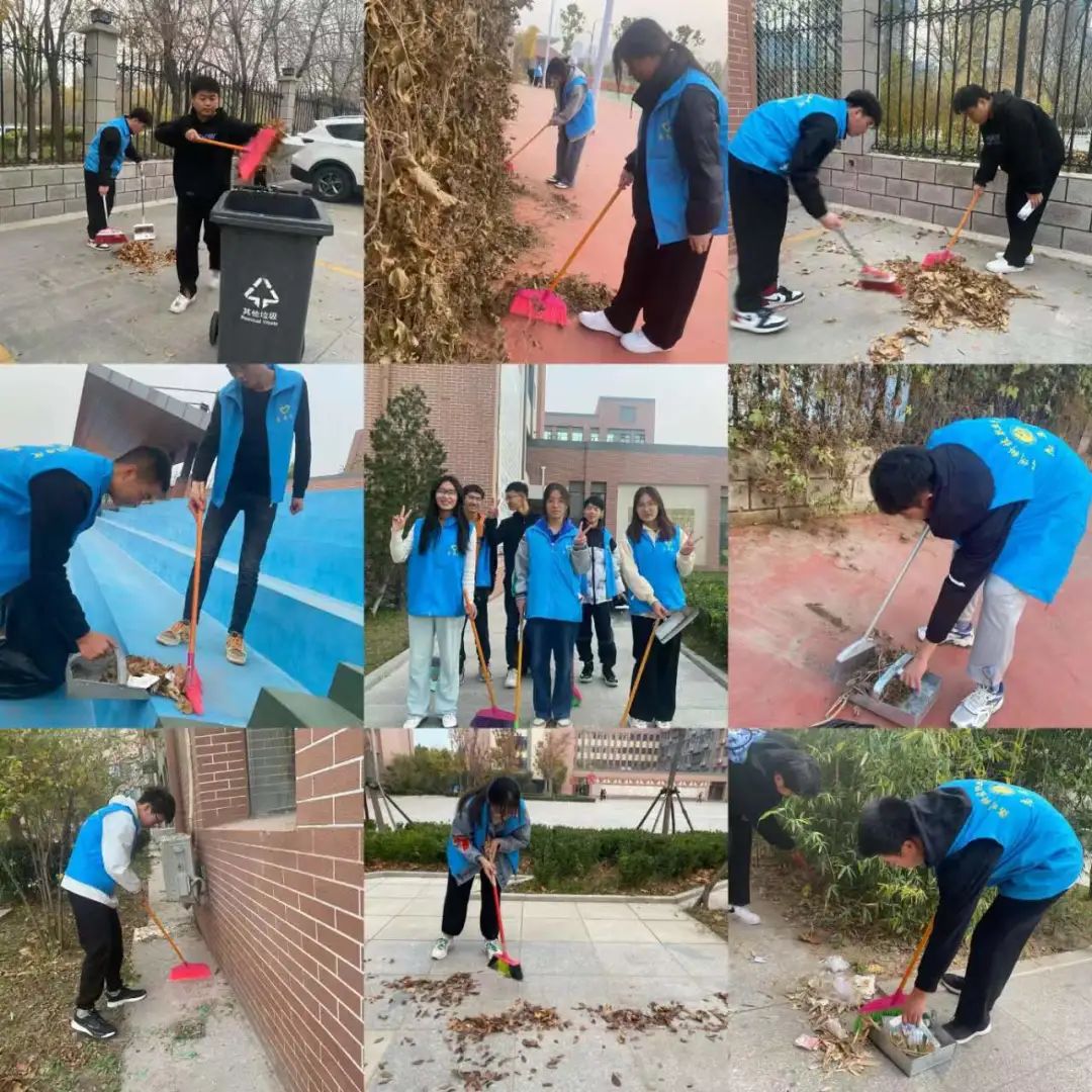 11月11日下午,志愿者们来到学校三圣源广场前集合,在分发劳动工具后大家正式分为三组:一组清扫教学楼、二组清扫校园垃圾、三组清扫操场。志愿者们谬力同心将校园内卫生死角、地面垃圾、地面散落的树叶、操场各个区域废杂物及饮料瓶等逐一捡起放入已备好的垃圾袋中。那一抹“志愿蓝”成了校园内最美丽的风景。