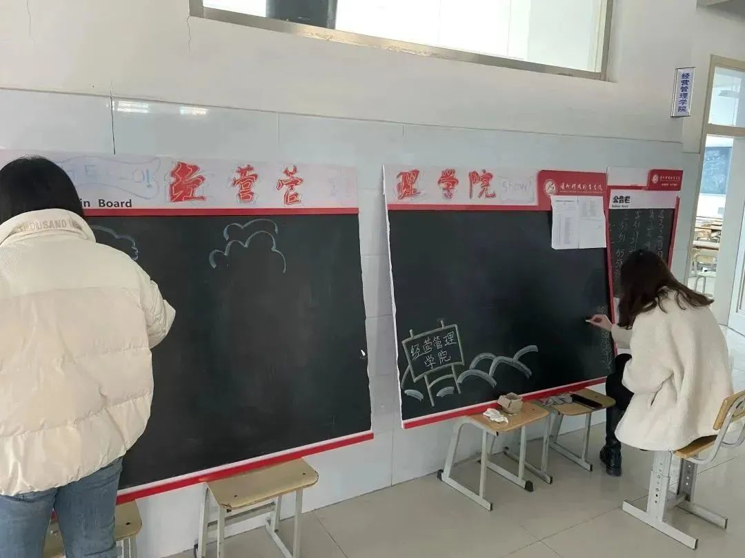开学在即,为营造良好的开学氛围,经营管理学院结合学生实际情况,在开学前三天召集部分学生志愿者回校打扫卫生以及布置教室,迎接马上回校的学子,让其感受到"家"的温暖。