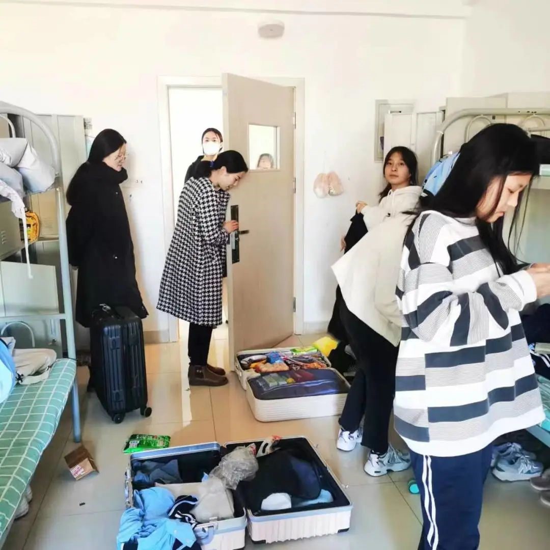 班主任们和教官们深入宿舍,进一步了解学生返校情况,关心同学们宿舍内物品是否完好,同时对宿舍的安全隐患进行排查并督促上报整改。宿舍内,好久不见的同学们,散发着激动的心情,互相诉说的假期趣事。